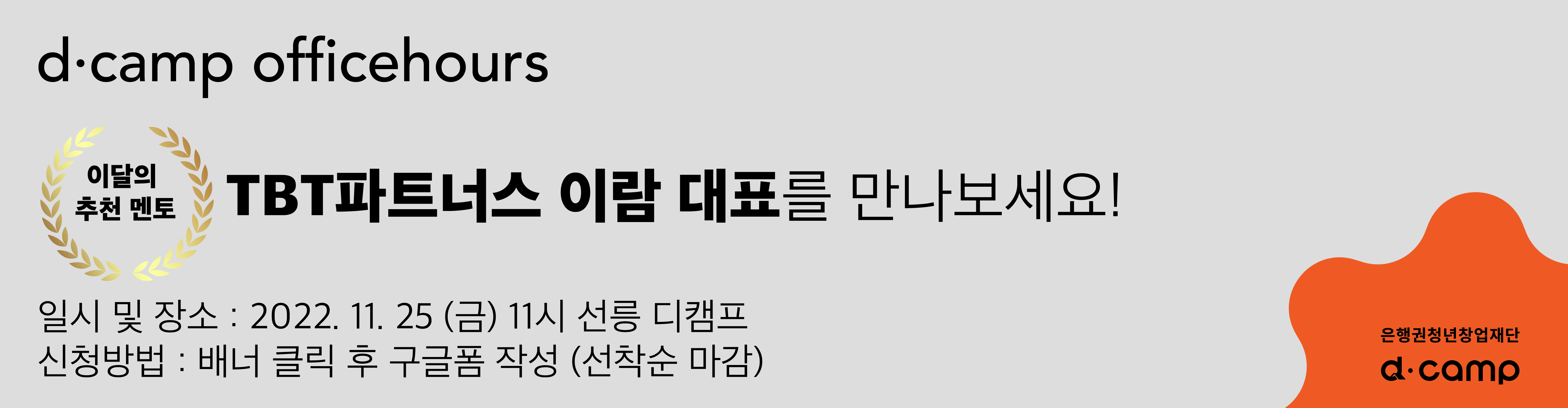 특별멘토링 참여자(15인)는 선착순으로 선발합니다. 아래 배너를 클릭하여 신청해 주세요